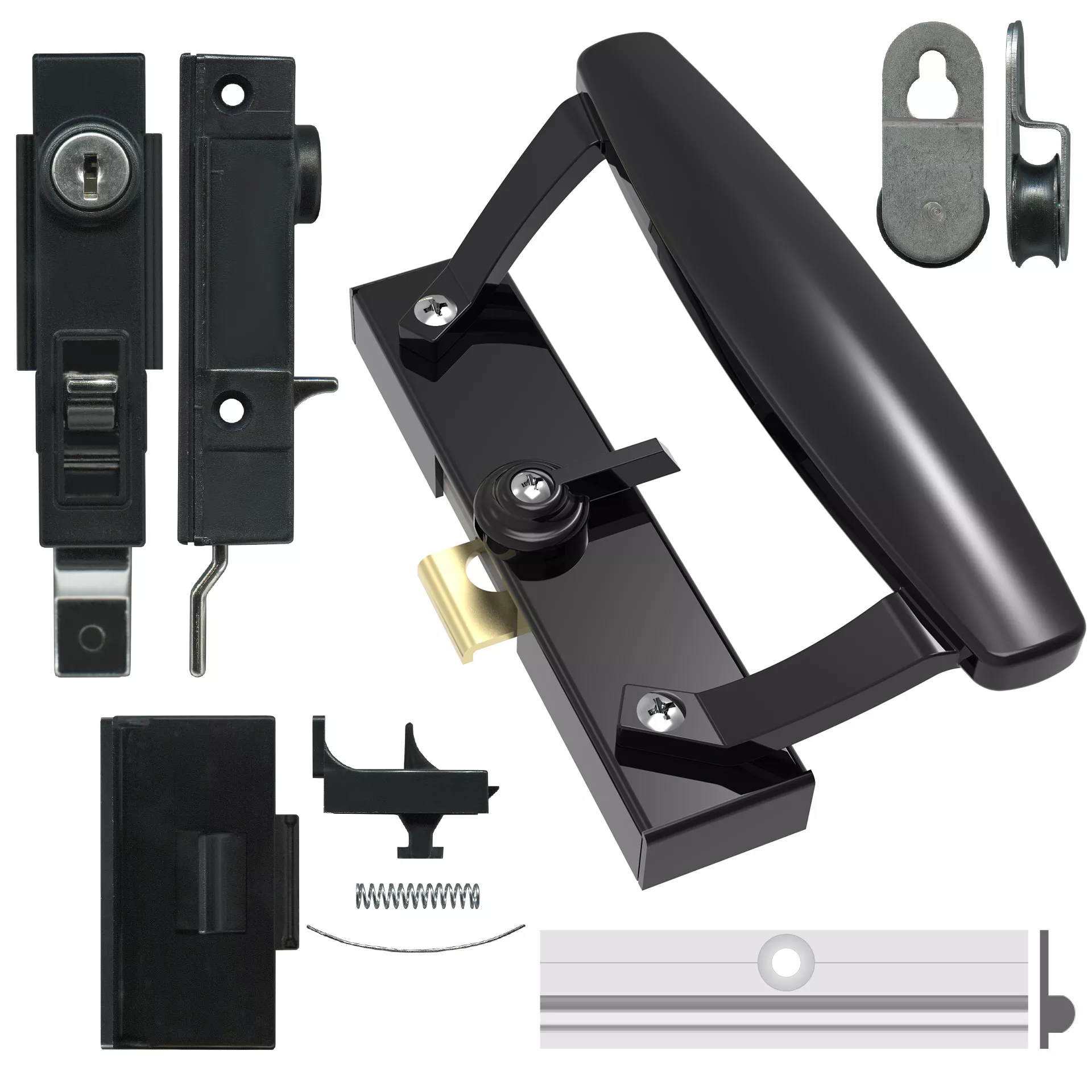 Total Hardware stock and supply security screen accessories, barrier door, screen door, flyscreen accessories, insect mesh, spline, spline rollers, locks, lock guards, lock shields, locksmith supplies, cylinders, hinges, corner stakes, door closers, chain winders, awning winders, catches, latches, pet doors, handles, pulls, shower screen components, door rollers, door carriages, door stops, door guides, window rollers, window carriages, sliding patio door locks, sliding window catches, sliding window locks, double hung window components, awning window components, casement window components, replacement tracks, capping tracks for all your residential fabrication, repair and replacement hardware requirements.