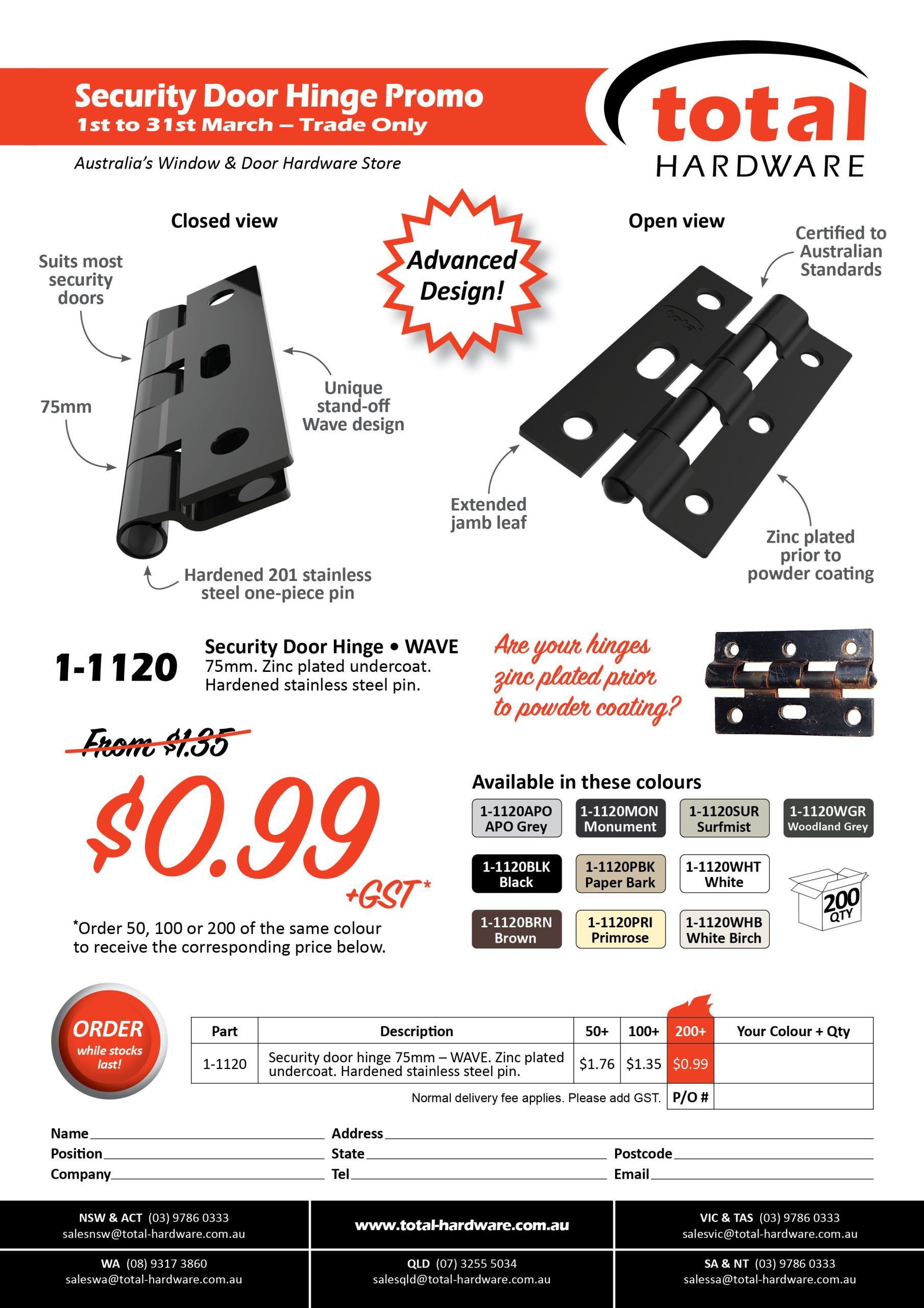 We have been dealing with Total Hardware for years. Always great customer service, pricing and a wide range of products that suit the needs of the majority of both our standard and special requirements. On the rare occasion the exact product we require isn’t available they are always happy to provide suggestions for alternative products that suit. We’ve been a happy customer of Total Hardware in the past and will continue to be into the future.
