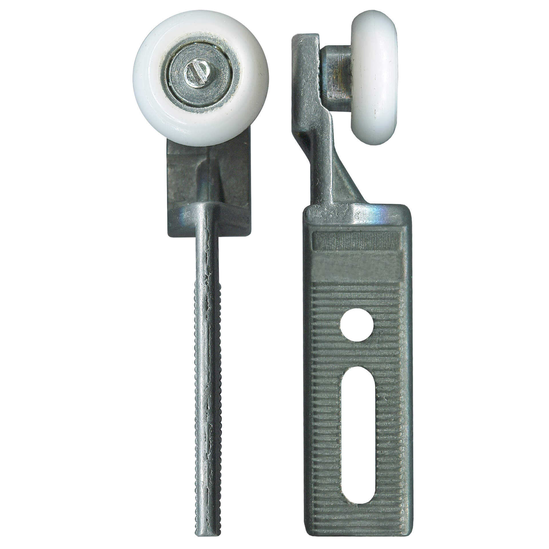 Top. Die-cast hanger and acetal convex roller with bearing. Suits Alcan.