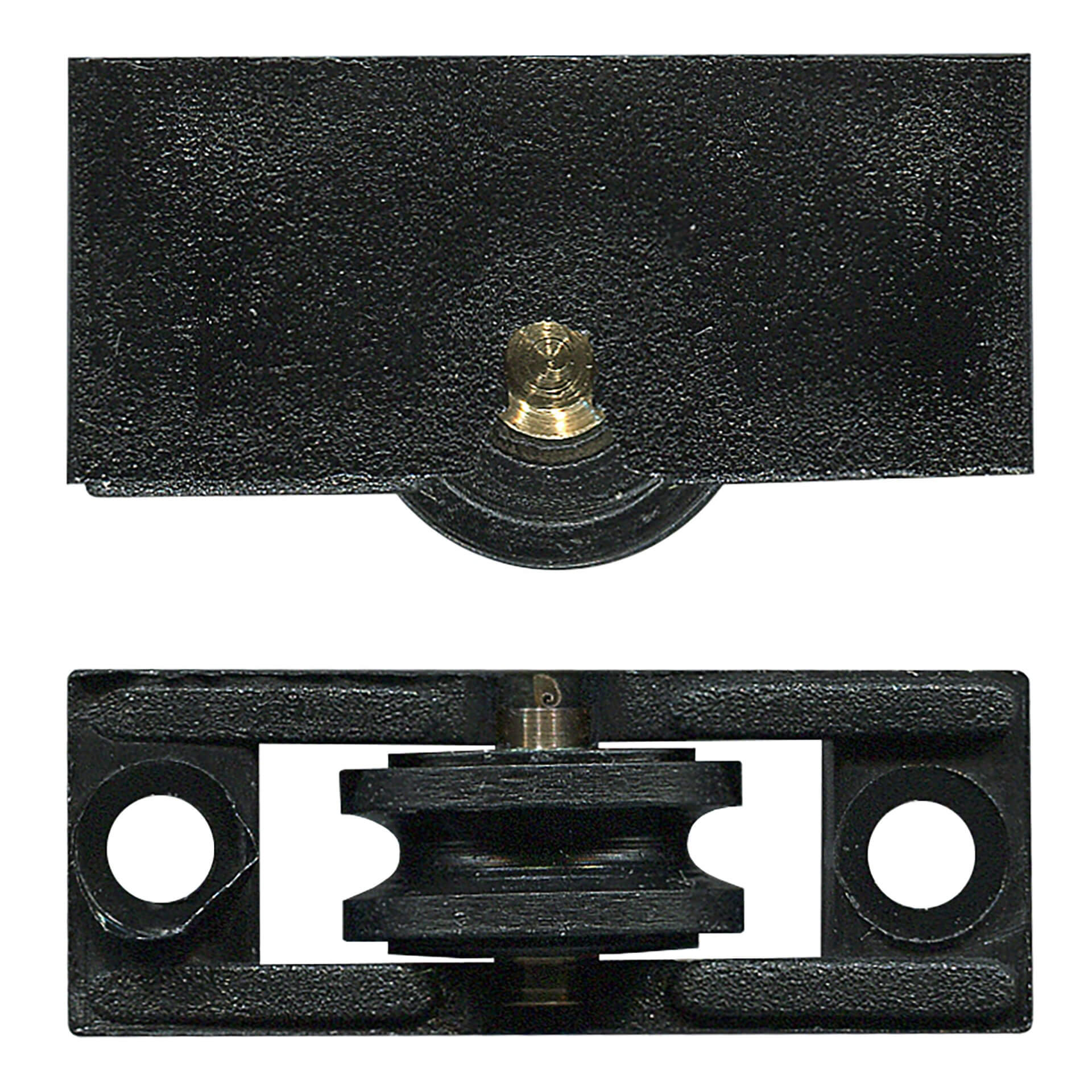 Acetal concave roller and brass axle pin.