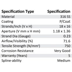 NOTE: SR insect screen is powdercoated 316 stainless steel and very corrosion resistant and recommended for environmental applications up to SEVERE. Refer to our Insect Screen Warranty and Insect Screen & Sheet Applications & Maintenance brochures in the library section of our website, at www.total-hardware.com.au, for standard warranty, recommended environmental applications and essential maintenance.